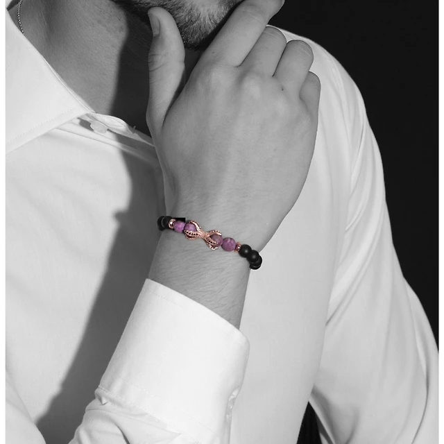 Luenzo Black Onyx and Snowflake with Silver Skull Bracelet