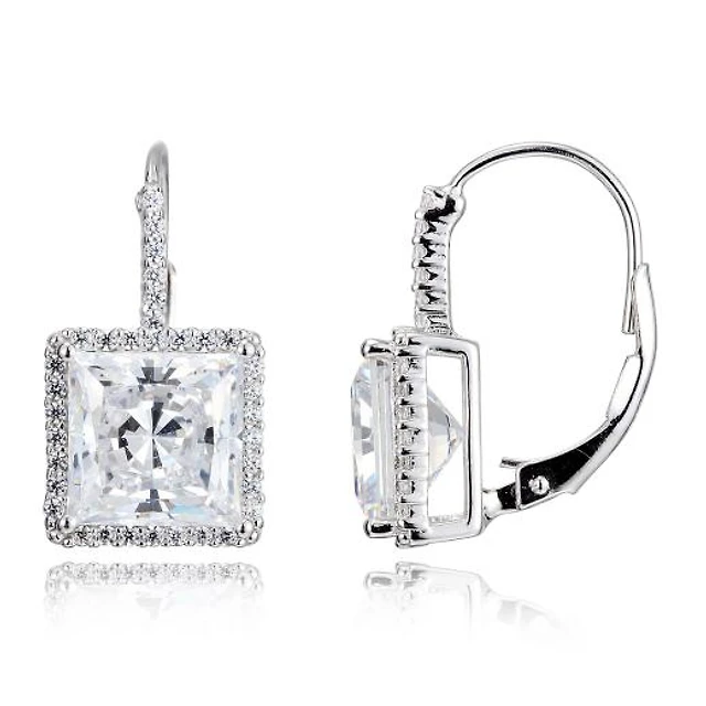 Silver Oval Cubic Zirconia Hook Drop Earrings