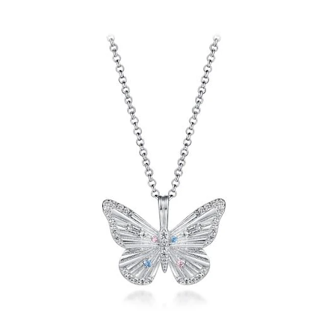 Sterling Silver Cubic Zirconia & Enamel Butterfly Pendant