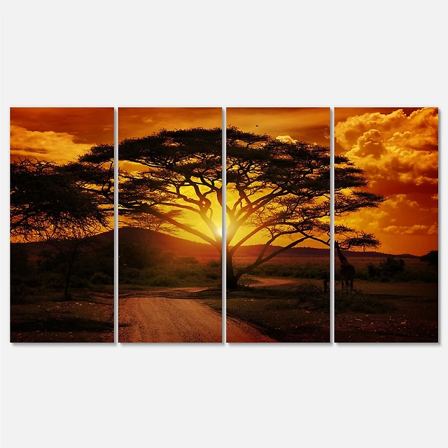 Colorful Sunset Over Lake Canvas Wall Art - 4 Panels