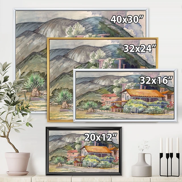 Small VIllage At Sunset Covered with Snow Canvas Wall Art Print
