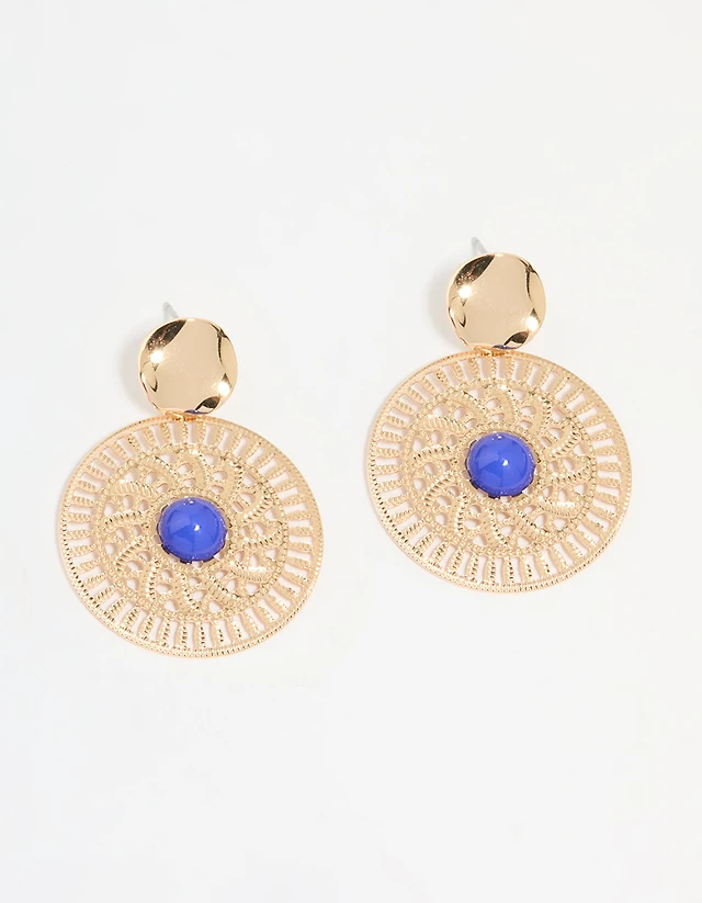 Gold Pink Marbles Stone Textured Oval Stud Earrings