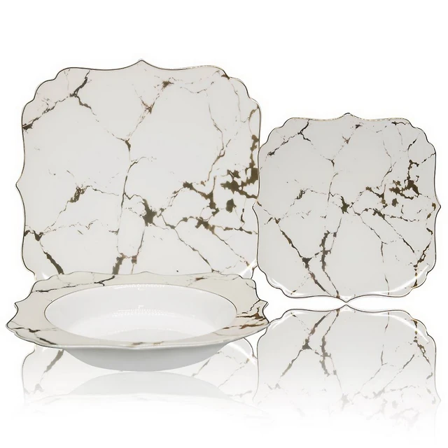 Torre and Tagus Savoy Gold Square Coasters, Set of 4 - White Marble