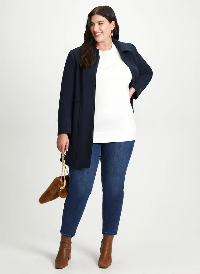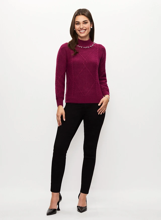 Rhinestone Detail Sweater & Pull-On Slim Leg Jeans