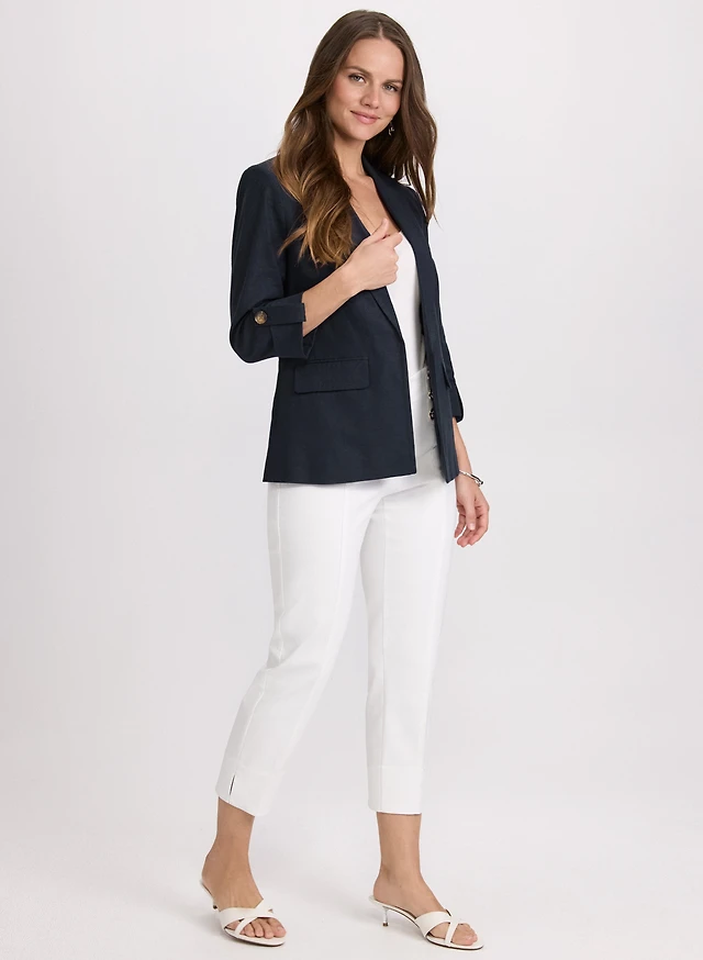 Twill 3/4 Sleeve Blazer & Slim Pull-On Ankle Pants