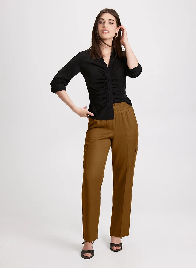 Satin Cap Sleeve Top & Pull-On Cargo Pants