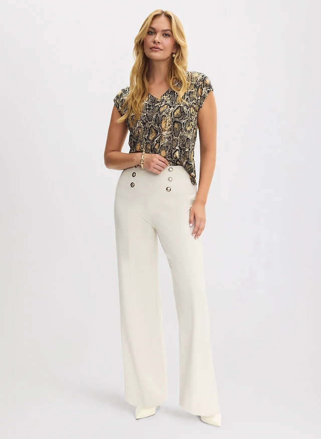 Keyhole Detail Pearl Trim Top & Snake Print Straight Leg Jeans