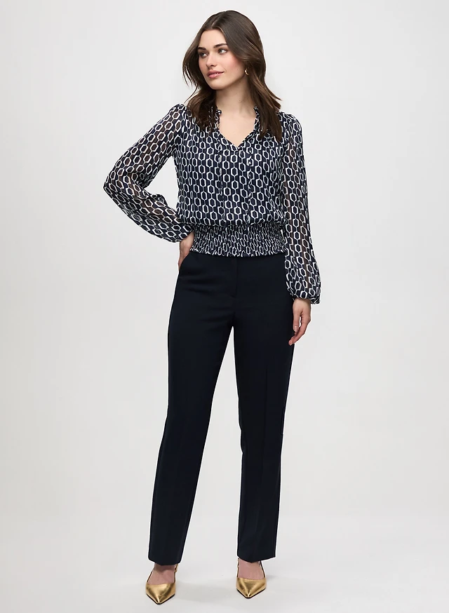 Smocked Waist Geometric Print Blouse & Straight Leg Pants