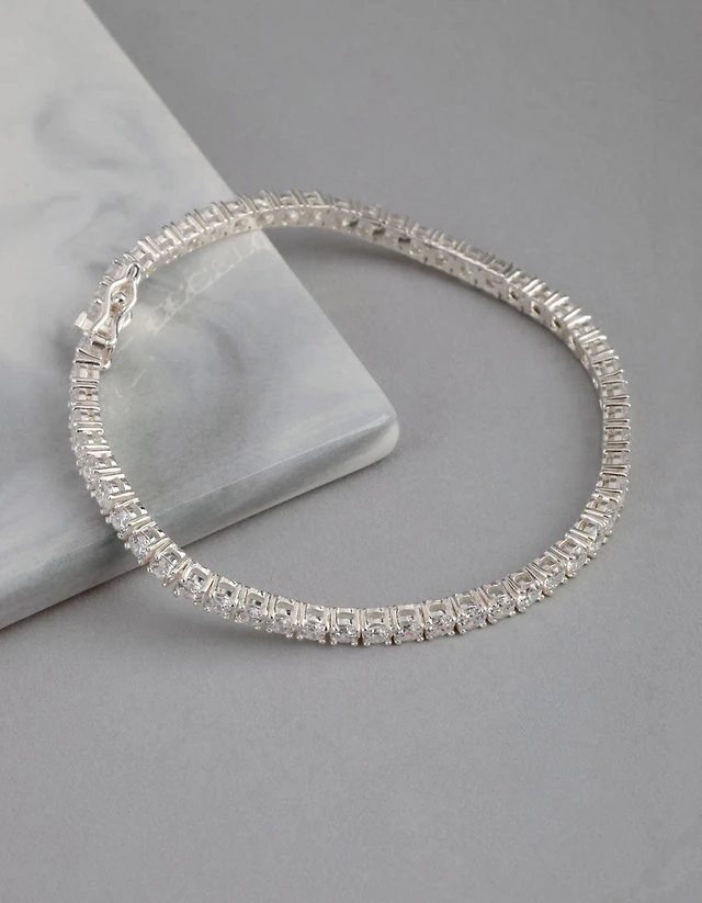 Silver Cubic Zirconia Navette Tennis Bracelet