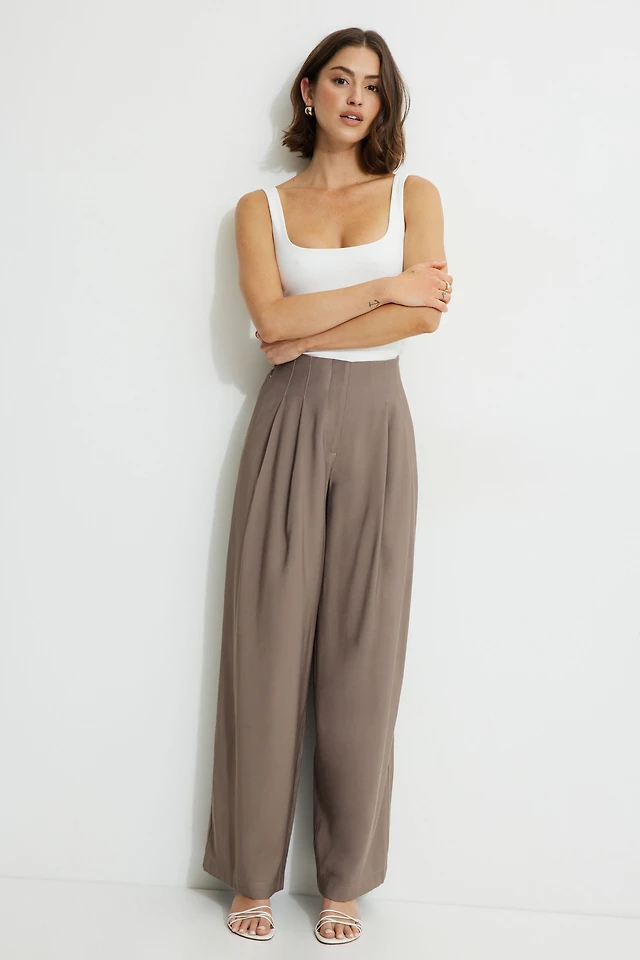 Ardene Brushed Knit Wide Leg Pants in Brown | Size | Polyester/Cotton