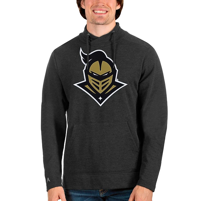 Men's Antigua Heathered Charcoal UCF Knights Team Logo Reward Crossover Neckline Pullover Sweatshirt