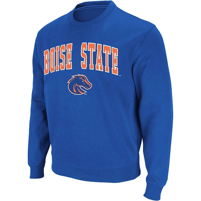 Men's Colosseum Royal Boise State Broncos Arch & Logo Crew Neck Sweatshirt