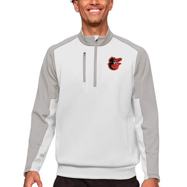 Men's Antigua White/Gray Baltimore Orioles Bender Quarter-Zip Pullover Top