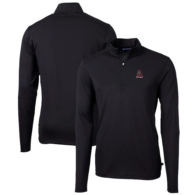 Men's Cutter & Buck Black Delaware Fightin' Blue Hens Team Big Tall Virtue Eco Pique Recycled Quarter-Zip Pullover Top