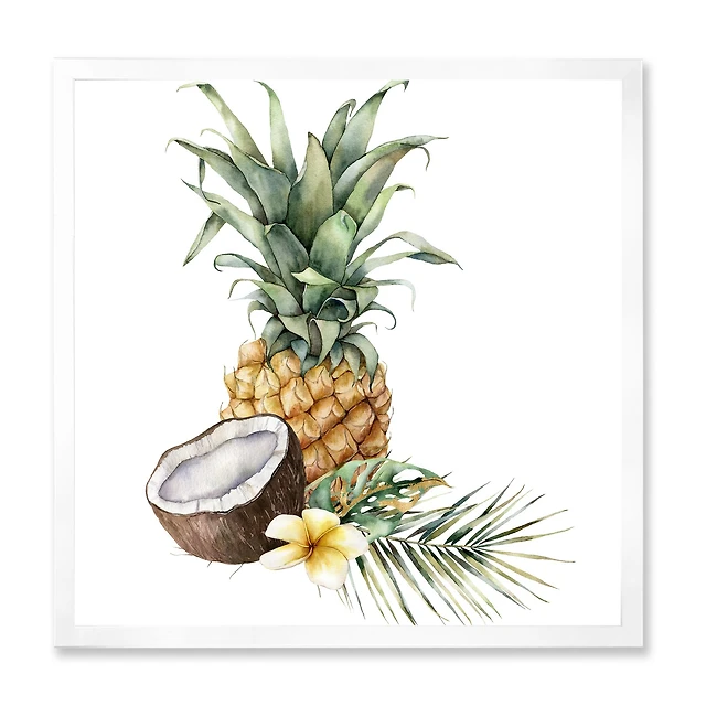 Pineapple with Coconut Plumeria and Palm Leaves Canvas Wall Art Print