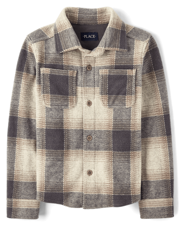 Kids Plaid Luxe Cozy Knit Button Up Shirt