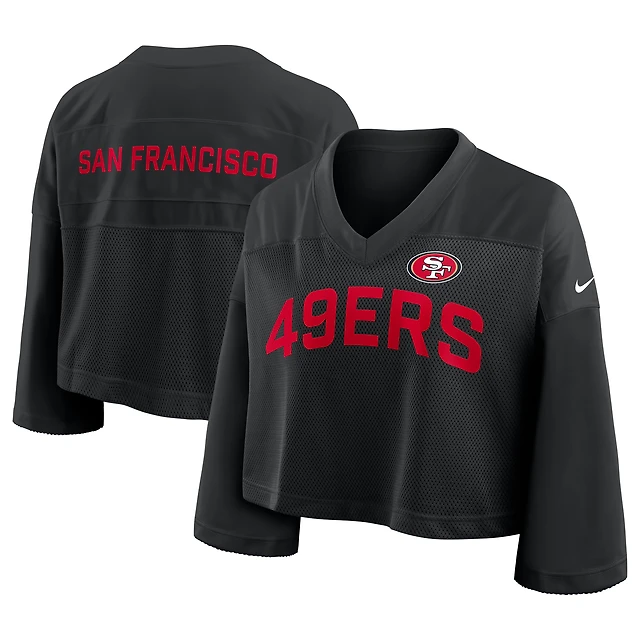 Women's Nike Black San Francisco 49ers Primetime Cropped Mesh Dri-FIT Fashion Jersey