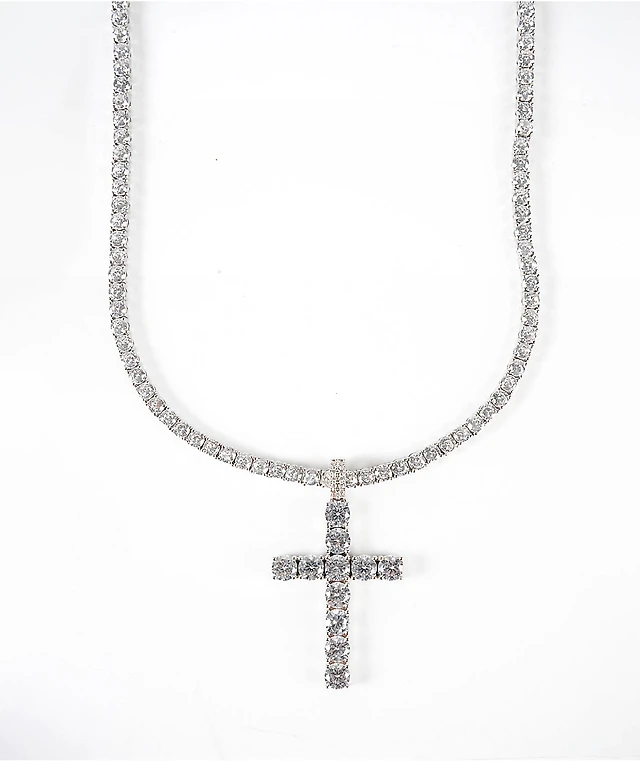 King Ice Tennis Cross White Gold 24" Chain Necklace