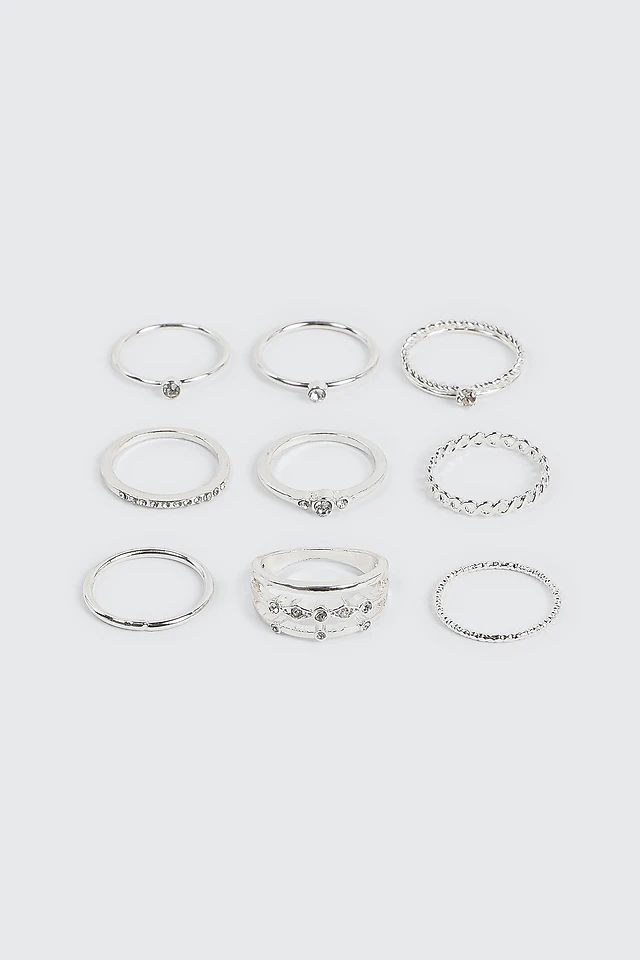 Ardene 9-Pack Assorted Rings with Stones in Gold | Size | Eco-Conscious