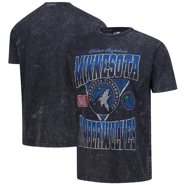 Men's New Era Heather Black Minnesota Timberwolves Boxy Old School Sport Vintage Wash T-Shirt