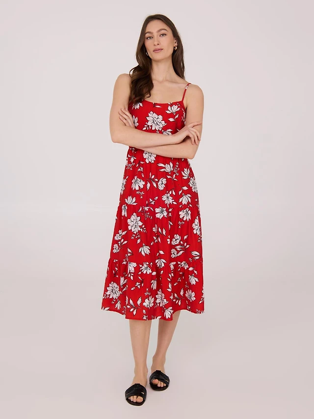 Floral Print Flutter Sleeve Button-Front Midi Dress