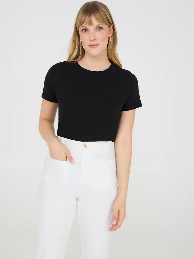 Haut côtelé à manche longue asymétrique et épaule dégagée