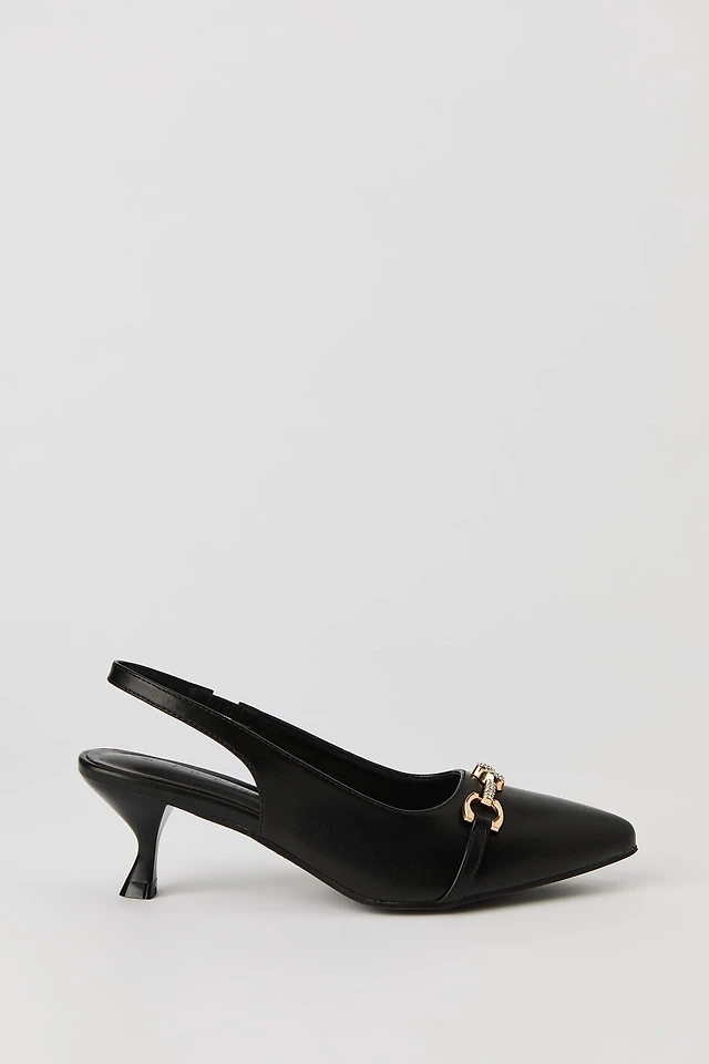 Rhinestone Pointed Toe Slingback Kitten Heel