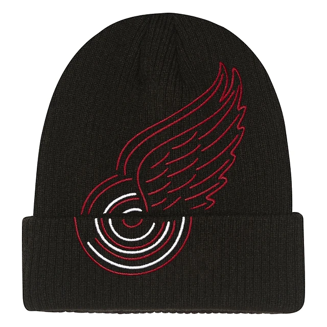 Youth Mitchell & Ness Black Detroit Red Wings Neon Line Lights Cuffed Knit Hat