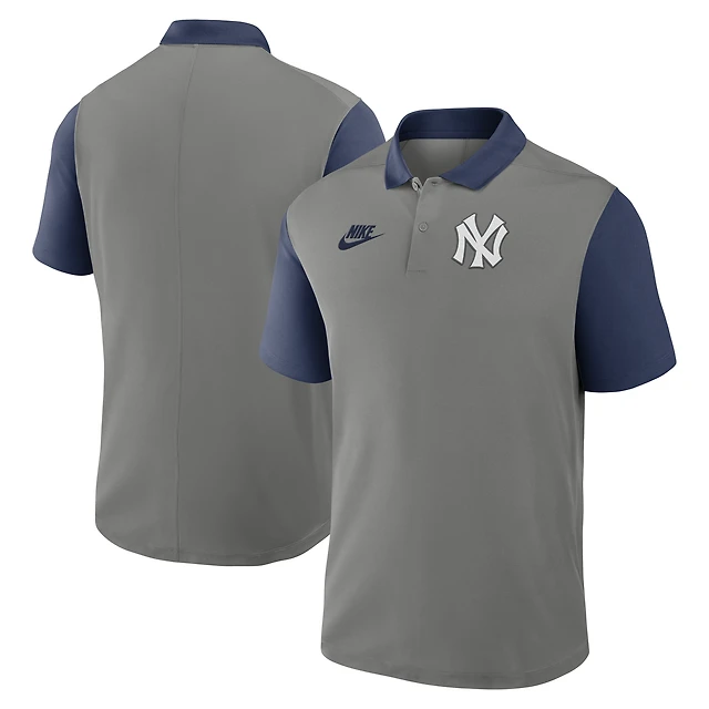 Men's Nike Gray/Navy New York Yankees Cooperstown Collection Color-Block Victory Dri-FIT Polo