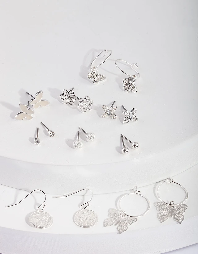 Silver Butterfly Hoop Drop Earring 9-Pack