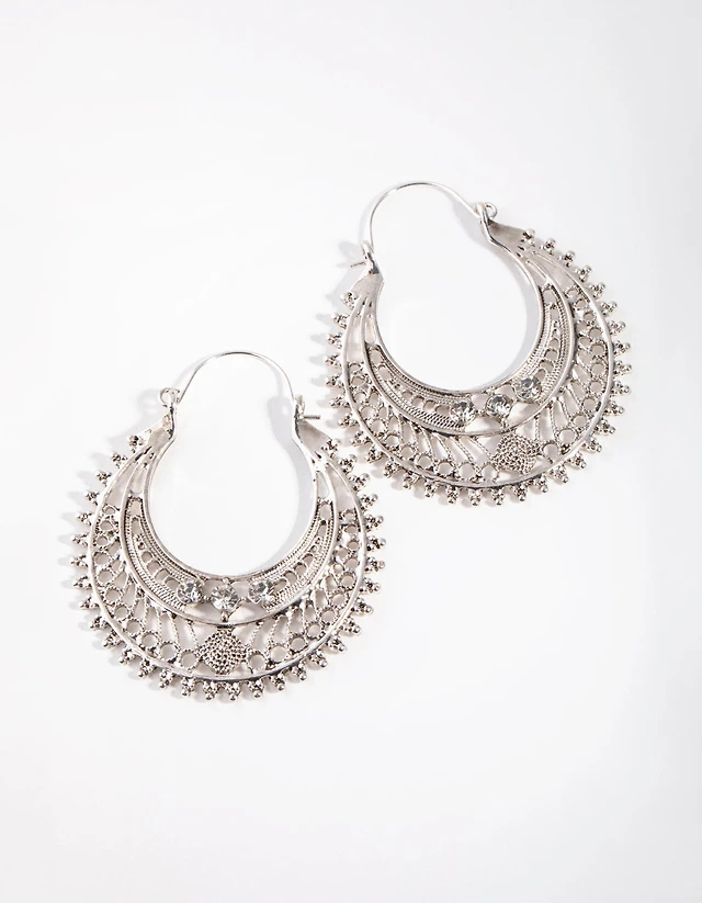 Silver Diamante & Polished Hoop Earrings 4-Pack