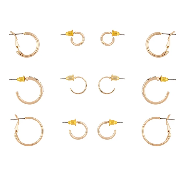 Gold Diamante Sleeper Hoop Earring 6-Pack