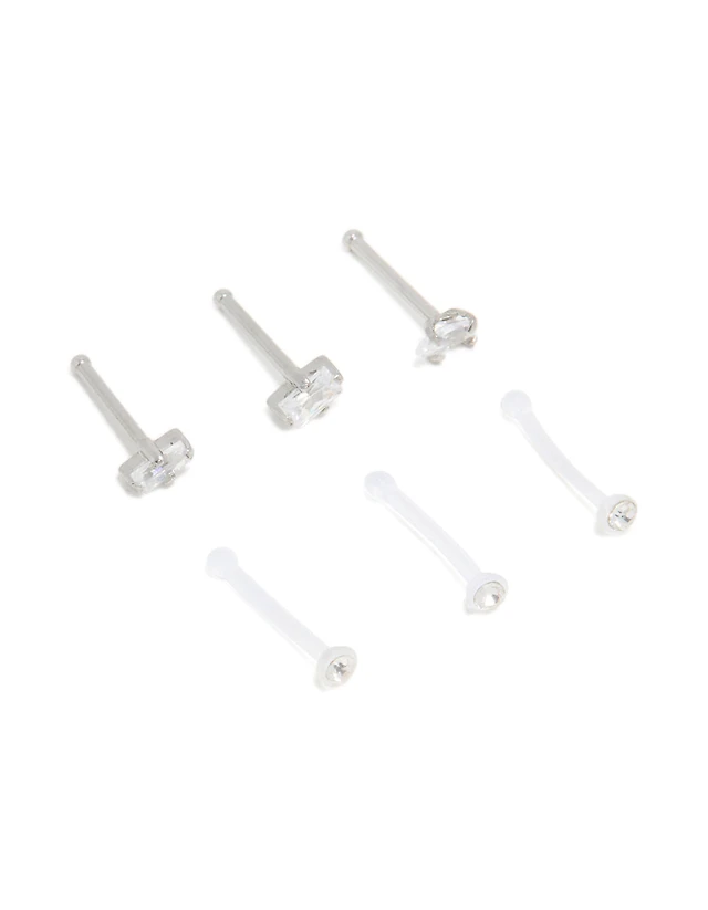 Gold Plated Surgical Steel Nose StudS 6-Pack
