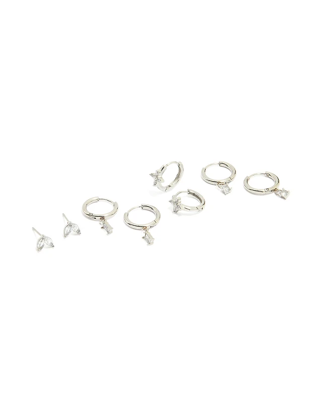 Waterproof Gold Plated Stainless Steel Cubic Zirconia Huggie & Chain Ear Stacking Pack