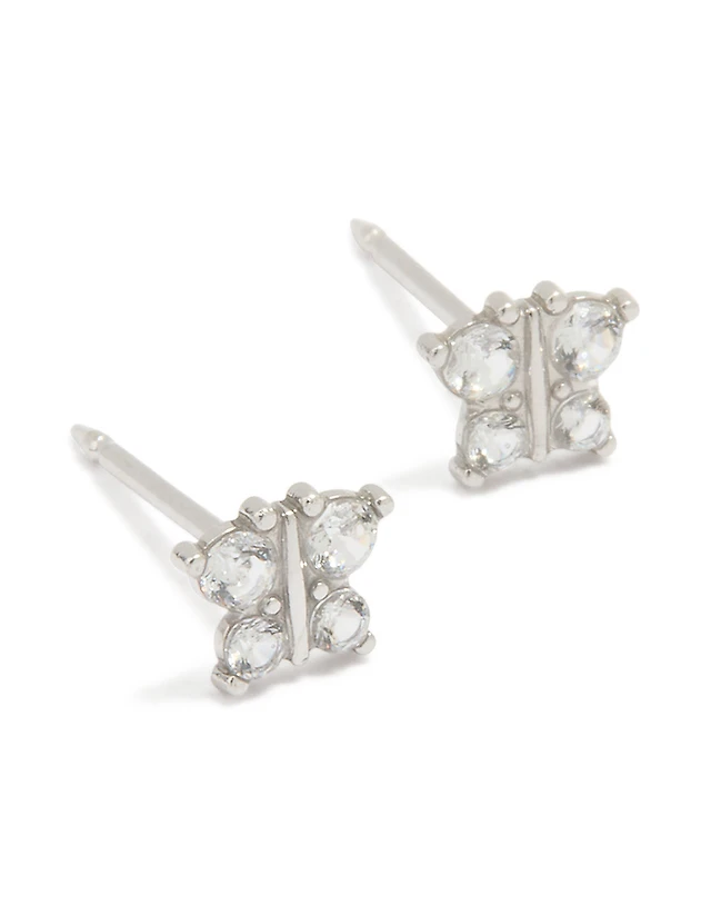 14K White Gold Cubic Zirconia Butterfly Piercing Stud