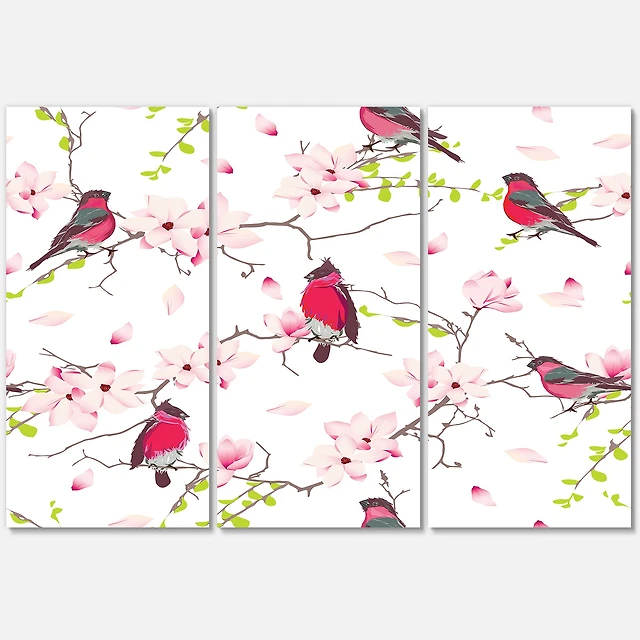 Red Bullfinches on Magnolia Tree Canvas Wall Art