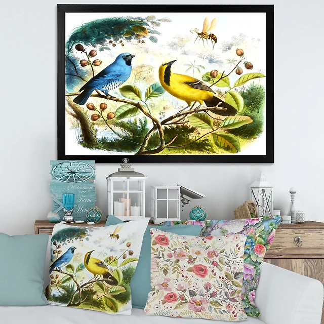 Blue and Yellow Bird The Wild Canvas Wall Art Print