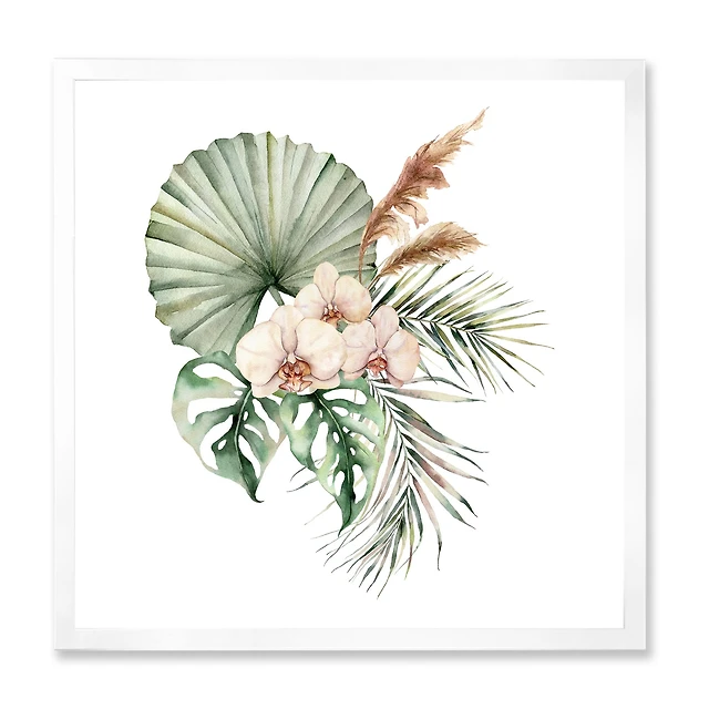 Tropical Bouquet with Orchids Palm Leaves Canvas Wall Art Print