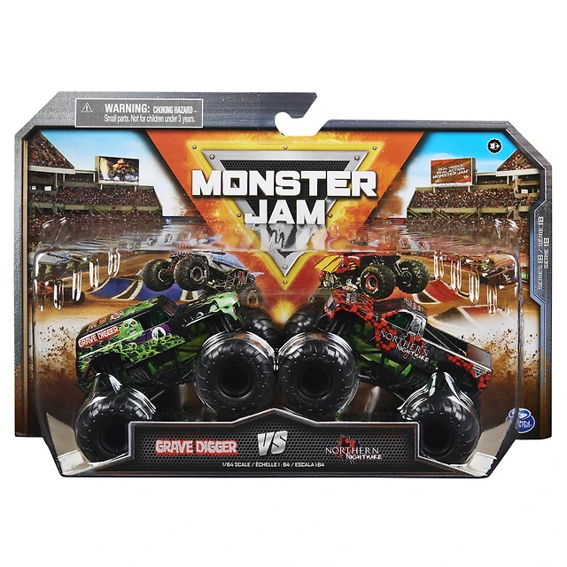 Monster Jam, Official Grave Digger Vs. Northern Nightmare Die-Cast Monster Trucks, 1:64 Scale