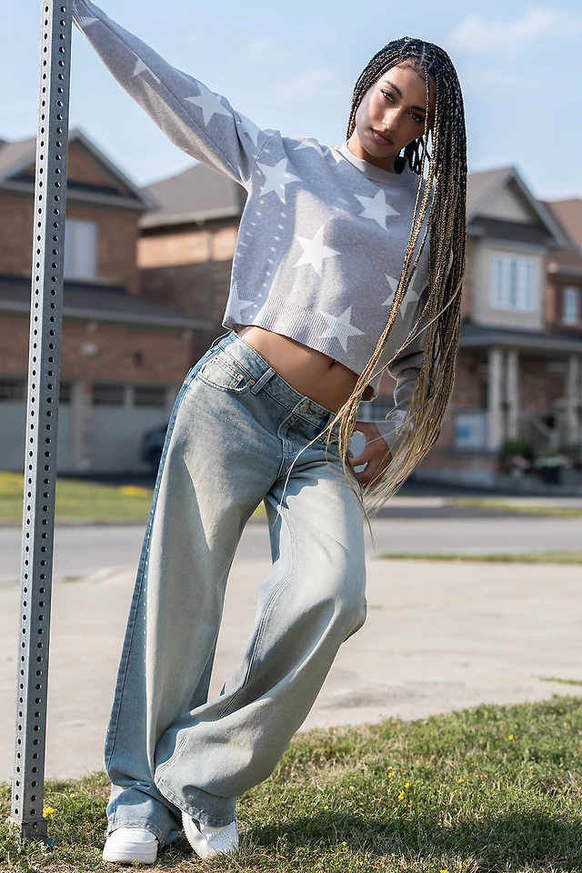 Jean baggy rigide à taille basse avec porte-clé et breloque d'étoile boucle