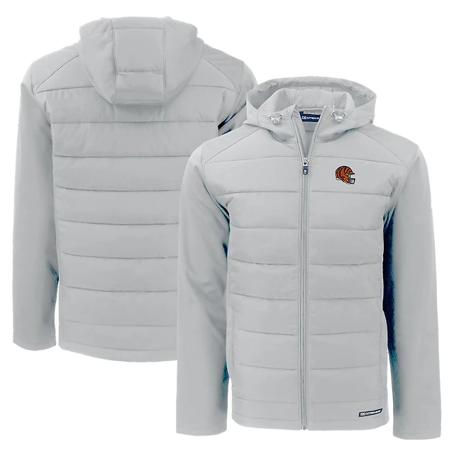 Men's Cutter & Buck Gray Cincinnati Bengals Throwback Logo Rainier PrimaLoft Eco Insulated Full-Zip Puffer Jacket