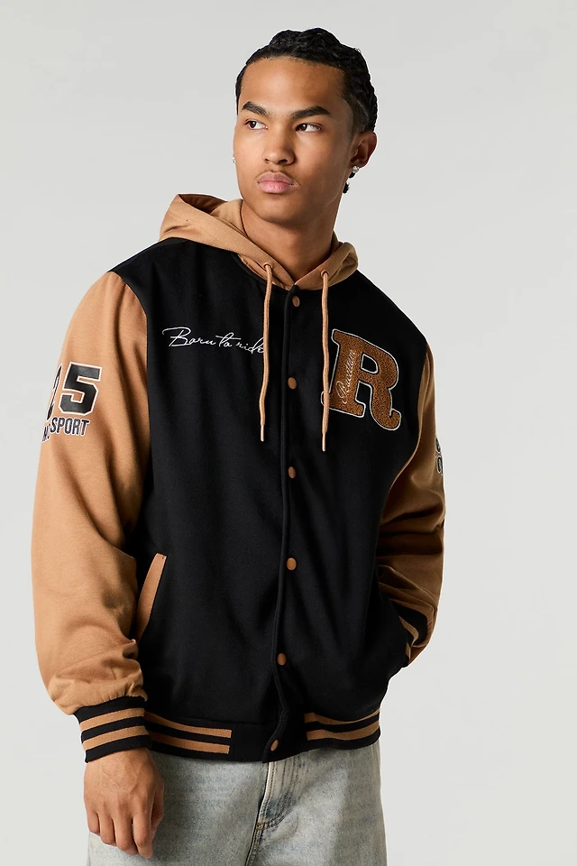 Blouson collégien à broderie en chenille de sergé S Racing Team