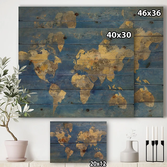 Golden Glam World Map Wood Wall Art