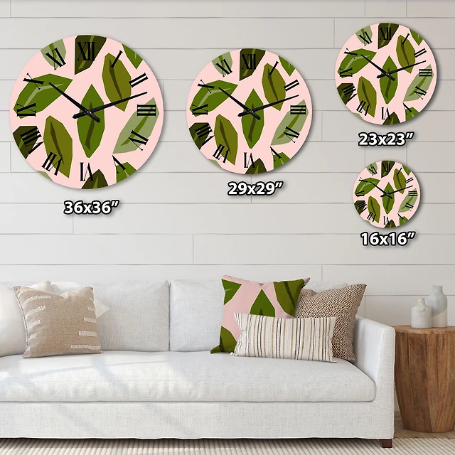 Green Botanical Branch With Leaves Oversized Wall Clock