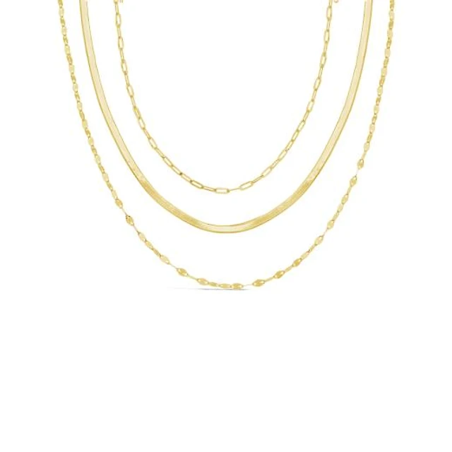 10K Yellow Gold 15"+ 3" Extension Graduated Layered Necklace