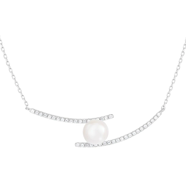Open Hearts by Jane Seymour™ 5.0mm Freshwater Cultured Pearl and 0.04 CT. T.W. Diamond Pendant in Sterling Silver