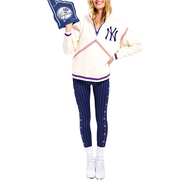 Women's WEAR by Erin Andrews Cream New York Giants Stripe Pullover Sweater