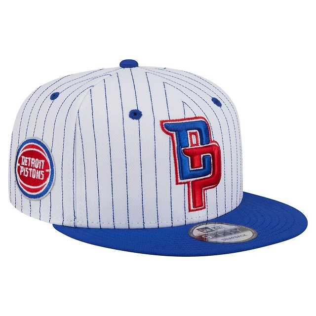 Men's New Era White Detroit Pistons Deceptor Pinstripe 9FIFTY Snapback Hat