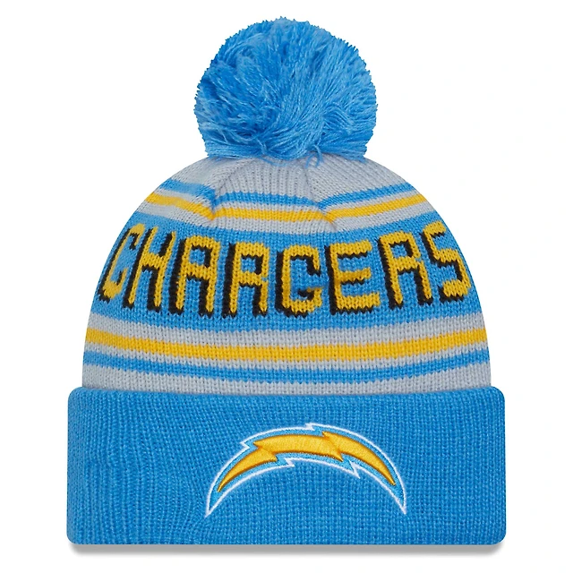 Men's New Era Powder Blue Los Angeles Chargers Main Cuffed Knit Hat with Pom