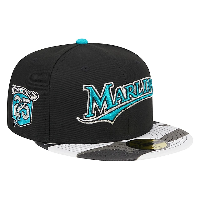 Men's New Era Black Florida Marlins Metallic Camo 59FIFTY Fitted Hat
